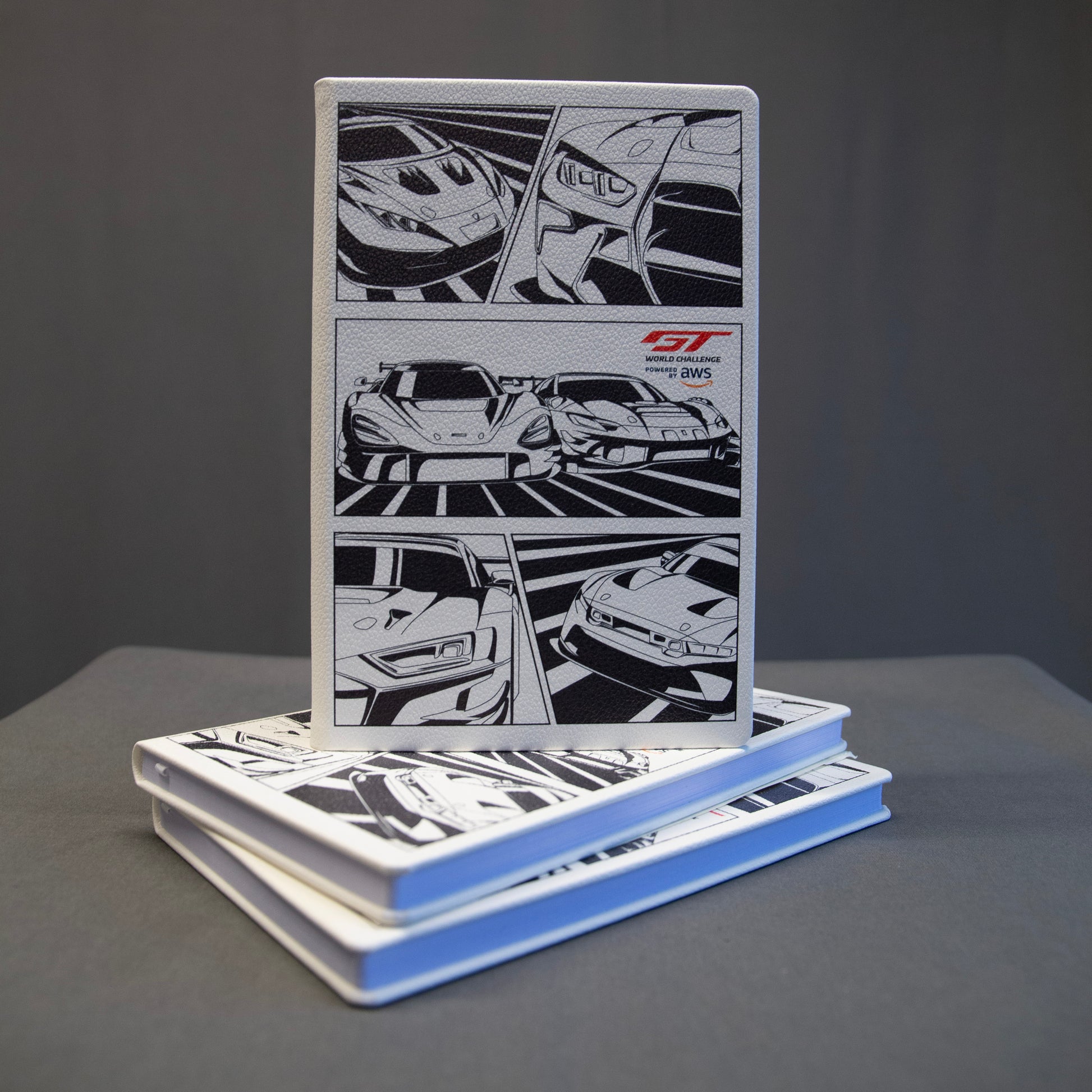 A5 white casebound notebook, finished in Como a high-quality material recycled from waste plastic bottles that would otherwise go to landfill.